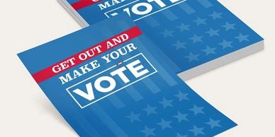 Make appealing half-fold or trifold postcards to impress your potential Voters. Our folded postcard printing company can provide you with elegant custom print materials for any occasion. Send out personalized folded postcards to promote special events, and other major promotions for your campaign.
