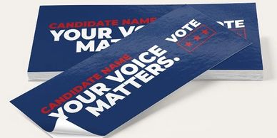 Custom stickers can help you build awareness about a cause, an initiative you are campaigning for, showing your support for a political candidate, or running for office yourself. With sizes up to 11 x 14 inches, custom stickers with your messaging can also travel around as campaign bumper stickers, and become portable billboards.